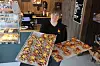 Baker og konditor Andrea Ingelsrud og hennes kolleger på Ingelsrud konditori skal bake minst 500 kanelboller til helgen. På brettet til venstre er de nye kanelbollene som Ingelsrud Konditori har bakt spesielt for 4.oktober i år etter at kunder har etterspurt en variant med vaniljekrem. på Brettet til høyre holder Andrea de mer tradisjonelle kanelsnurrene.