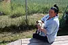 Mona Skullerud med en av gjestene ved hundehotellet