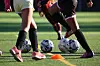 Illustrasjonsfoto barnefotball tatt på fotballtrening, her er det jenter som er i aksjon på en kunstgressbane.