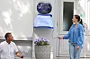 Rektor ved Øvrebyen skole Øivind Smerkerud og representant for elevrådsstyret Ingrid Walberg Nilssen fikk æren av å avduke Kongsvingers nyeste blåe skilt.