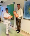 Teamleder Kari Hildegun Kagnes Negård og Tor-Arne Leithe på kreftenheten ved sykehuset. Tor-Arne delte ut boken «Hver dag teller» om livet etter kreft.