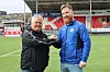 Mads Furulund (t.v.) i Vinger FK og Ronny Wilberg i Brandval IL er ingen bitre fiender selv om det igjen skal avgjøres hvem som er kommunens tredje beste fotballag og nest beste klubben i byen.