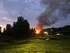 Nødetatene er på vei til et overtent næringsbygg på Roverud. Det er fare for spredning.