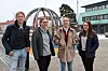 Isak Høvik (t.v.), Amalie Haga Hamletsen, Mari Bjerke og Maiken Mellum Pettersen er positivt innstilt til endringer i byparken, så lenge byparken består i god stand.