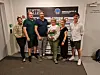Tove Gulbrandsen (med blomsterbukett) går av som styreleder i ishockeyklubben. Linda Lind Noer (f.v.), Raymond Føien, Christer Mykkestue, Stine Eriksson og Anders Angelbrant er klar for å gjøre et innsats i klubbstyret.