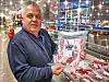 Mads Furulund hos Rema 1000 Langeland kan berolige kundene med at det vil være god tilgang på ribbe helt fram til jul - hvis folk ikke hamstrer. Og det er det ingen grunn til. Det er nok ribbe, og den blir porsjonert ut til butikkene i november og desember.Foto: Geir Christiansen