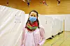 Ved inngangen møtes de som skal vaksineres av Sivilforsvaret som deler ut munnbind til de som ikke har med eget, og viser videre inn til registreringen. Det er i hallen satt opp antibac-stasjoner og tydelige skiltninger, som også minner om smittevern.