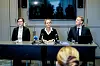 Margrethe Gudbrandsen (t.v.) kommunikasjonsdirektør, Tina Søreide konkurransedirektør og Magnus Reitan i konkurransetilsynet orienterer om beslutningen i en etterforskningssak på en pressekonferanse i Oslo onsdag.