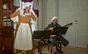 Vertshusholdersken Ulla (Mette Skogbakken) synger med til Profoss Nicolai Elskougsens lutt-akkompagnement.