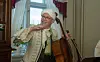 Øyvind Gimse som Bachs cellistsønn, forteller kort om stykket han skal spille.