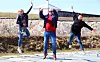 Hoppende glade på Kongsvinger festning var (f.v.:) Hanne Marte Strøm Vestlund fra Festningshotellene. Fra Dinner in the sky, restaurantsjef Thomas Larsen og markedssjef Jill Bottolfsen