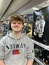 Den neste jeg hilste på var Tian, som denne uken jobber på Brikkebutikken. Tian Hulaas Åslie (14) går i 9C på KUSK. Han har valgt å jobbe på Brikkebutikken fordi han har alltid vært glad i Lego.
