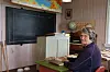 Astrid Engen Kristiansen, leder i Granli historielag, viser frem klasserommet som er innredet slik det kunne se ut i storskolen.