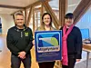 Fra venstre: daglig leder Tom Ljungquist og kontorleder Ine Ljungquist i Malermester Ljungquist AS mottok beviset på at bedriften nå kan kalle seg et mijøfyrtårn av ordfører Eli Wathne.