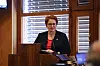 Ordfører Elin Såheim Bjørkli forteller at Kongsvinger må omstille og tilpasse driften til rammer og inntekter..