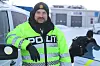 Politibetjent Emil Fjeldseth vinket inn mobilsyndere ved ishallen under lørdagens kontroll.Foto: Pål Sønsteli
