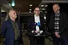 Riksmekler Mats Ruland, flankert av leder i Fellesforbundet Jørn Eggum t.v. og direktør i Norsk Industri Stein Lier Hansen informerer pressen om resultatet etter meklingen i frontfaget. Meklingene finner sted på Hotel Opera i Oslo.