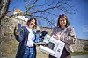 Christine Rode Christoffersen og Ann Kristin "Titti" Vårdal Olsen er frivilligsjefer, og tester ut appen Nyby.Foto: Eventyrfestningen