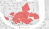 Området som er rammet av strøbruddet.