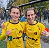 Jesper Grundt (t.v) og Alexander Håpnes rykket opp til OBOS-ligaen med Moss.