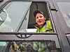 Jo Henry Linner fra GIVAS sitter bak spakene i piggemaskinen som skal lage et dypt nok hull til julegrana på Rådhusplassen i Kongsvinger.Foto: Geir Christiansen