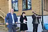 Ordfører-trioen Rune Grenberg (f.v.), Eli Wathne og Knut Hvithammer fra henholdsvis Grue, Kongsvinger og Sør-Odal klippet av vannledningen som symboliserte den offisielle åpningen av vann-anlegget på Granli.