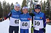 Henrik Holtet (f.v.), Roland Platek og Kasper Vangen var slitne, men kostet likevel på seg et bredt smil etter å ha kommet i mål under kretsmesterskapet i langrenn på Liermoen lørdag.