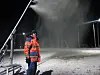 Otto Kristiansen leder for skigruppa i Granli IL produserte snø på stadioen på Liermoen i går. Men i løpet av kvelden måtte de gi opp på grunn av problemer med det nye kjøletårnet.Foto: Pål Sønsteli