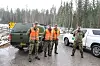 HV-soldatene Thor Arne Lysthaug (t.v.), Morten Wormdal og Aleksander Grande fikk besøk av områdesjef Thor Magnus Fjæstad da de hadde vakt på Riksåsen lørdag.