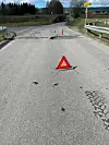 På Roverud har det sprukket et stålrør i bakken, og som følge av det er veien stengt inntil videre.