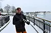 Tom Jørgensen tar mange bilder ute. Her fotograferer han duer under brua.Foto: Øystein Engh