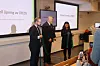 Forskningsleder Bård Tronvoll (t.v), rektor ved Høgskolen i Innlandet Peer Jacob Svenkerud og ordfører Eli Wathne åpnet senteret på den gamle måten.