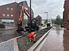 Tirsdag klokken 15.00: Prosjektet med å klargjøre for beplanting i Storgata er så smått i gang.