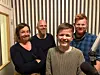 Mette Skogbakken (f.v.), Kjetil Foseid, Ludvik Olsen Brøntveit ogSten Bjørge Skaslien Hansrud medvirker i julekalenderen på Radio Kongsvinger.