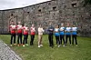 Landskampen 2021: Thomas Alsgaard (f.v.), Johannes Thingnes Bø, Astrid Uhrenholdt Jacobsen, Tora Berger, programleder Marit Bjørgen, programleder Gunde Svan, Magdalena Forsberg, Stina Nilsson, Anders Södergren og Marcus Hellner.