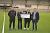 Patrick Holtet (t.v) (Sportslig leder i KIL Fotball), Lone Stenmark Nylænder (stipendmottaker), Jane Renate Hansen og Jonas Krabseth (Begge fra Sparebank1 Østlandet)
