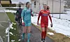 Det ble en kamp i alle årstider for KIL Fotball Kvinner borte mot Bjørnevatn. Her er keeper Juliette Lykke Skonnord og Tale Buvarp avbildet i liknende forhold under en treningskamp i vinter.