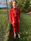 Eivind Duelien Vaaje fra KIL Friidrett løp like godt inn til førsteplass i klassen G16 blant 14 andre konkurrenter i sin aldersklasse.
