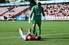 KIL-kaptein Adem Güven ble liggende etter en duell. Lyn-keeper Alexander Pedersen følger med.