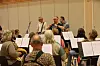 Det blir trangt når to korps og fullt band skal på samme scene.