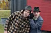 Robin Nikolaisen (t.v) driver Norges eneste Vazelina Bilopphøggers museum. På tirsdag var han i Kongsvinger for å få hatten Kjetil Foseid benyttet på avskjedskonsertene til Vazelina Bilopphøggers..