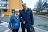 Anne Berit Gaukstad Løfsgård og Odd Henning Dypvik foran KOBBL-bygget fra 1947. Dette var starten på boligbyggingen etter andre verdenskrig, og hjemmet til Løfsgård fra 1947 til hun flyttet ut og giftet seg i 1962.