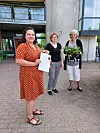 Ordfører Margrete Haarr, Toini Myrvang Midtsundstad (merkantil Langelandhjemmet) og pasient Wenche Hagaløkken