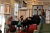 Ann-Helen Lindskog (f.v.) Han Young Kim og Anna Vass utgjør Trio Skog. Torsdag kveld bød de på vakker musikk i Vinger kirke.