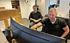 Sverre Schjervheim (t.h) var tirsdag tilbake på jobb etter å ha krysset grensen til Norge. Mirzet Mahmuljin er glad for å ha kollegaen tilbake.