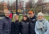 Høyres stortingsrepresentanter Olve Grotle (f.v.), Anna Irene Molberg og Linda Helleland støttet ordfører Eli Wathne og First Seafood-sjef Andreas Sundnes under demonstrasjonen foran stortinget.