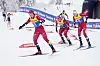 Milla Grosberghaugen Andreassen (t.v), Julie Bjervig og Maria Hatrz Melling under kvartfinalen i sprint NM på ski på Gjøvik.