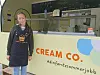 Mia Lysen har brukt sommerferien på å servere is fra isvogna på Rådhusplassen, noe hun ser på som både lærerikt og gøy.