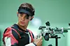 Henrik Larsen i aksjon under kvalifiseringen i 10m luftrifle i Asaka skytterstadion under OL i Tokyo.