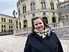 Margrethe Haarr foran sin nye arbeidsplass - Stortinget.